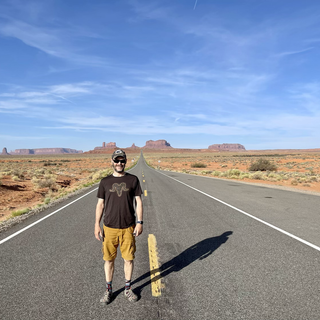 The 17 mile loop road through Monument Valley on Navajo Land is CLOSED! We thought it was open! No worries, the whole area is Monument Valley and the spot where Forrest Gump ends his run is luckily not closed. They slow traffic with speed limit signs going from 65-35, then there’s a pull-off. We didn’t have to wait long for the road to clear to get my shot. We drive into Winslow, Az, but I didn’t realize it was WINSLOW until we were gone or I would have found a corner to stand on!